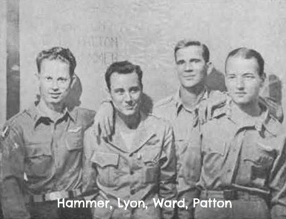 The wing man to Lt. Patton was Flight Officer Hammer. He sighted the enemy formation just a few seconds before the flight leader went into the turn. The flight leader called for them to stick together. The enemy was three thousand feet below. He didn’t observe the effect of the flight leader’s and his wing man’s attack but as the second element went in the whole formation shifted to an echelon of Vee’s to the left. The Vee in the middle dropping back fifty yards and the Vee on the left dropping back one hundred yards so they could better concentrate their cross fire on their attackers. Heavy fire from the tail turret of two bombers was directed at Lt. Patton as he was firing back on them. As Lt. Patton turned away two enemy fighters jumped his tail Hammer dived on the closest one and gave him one burst from one thousand yards at 90 degrees deflection. The tracers fell behind. He continued an attack from five hundred yards on a bomber. It was a dead astern pass. The left engine received hits and blew up. The bomber headed down in a steep bank with the left engine on fire. A fighter was making a diving attack on him from eight o’clock. He turned into the clouds, observing his bomber going down smoking, flames shooting from the left engine, diving and undoubtedly out of control. He entered the clouds and as he came out underneath he saw the bomber hit the mountain ten miles south of Shing. There was a’terrific explosion as it had evidently failed to get rid of its bombs. Flight Officer Hammer regained altitude and hunted for the rest of the bombers. He caught one straggler, closed in dead astern from a shallow dive, and opened fire. He opened at five hundred yards and closed to one hundred yards. The left engine caught fire. Pieces flew off the fuselage and the right engine started smoking badly. He chandelled up and watched the bomber steeply spiraling towards the ground completely out of control. Two fighters dived on him from eleven o’clock. He saw them twelve hundred yards away, split-Sed away and came up looking to see if they had followed. They had not. The bomber had spiraled through the clouds so he followed down under to seven thousand feet. He saw a large fire and black smoke. Hammer, climbed back through tho clouds, got on the tail of another bomber. All his guns jammed. Three enemy fighters attacked from four, six, and eight o’clock.’ Their fire was inaccurate, underneath and low. He did a split-S, found his element leader and went to Shing.
